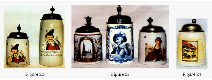 On this stein a scowling farmer is holding up a small stein of beer in his right hand, as if in a toast. See figure 21.