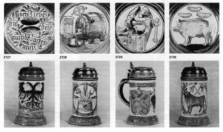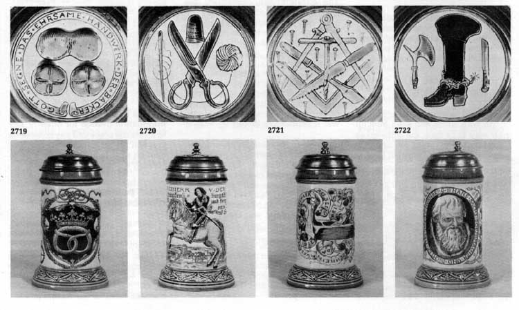 There were a great many, and still are, manufacturers of steins and all seemingly devoted some of their output to honoring the skilled trades, but one will be hard put to find anything as well designed and as imaginatively decorated as the twelve steins turned out by Villeroy and Boch at Mettlach around the turn of the century.