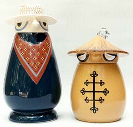 In 1959, trading on the popularity of the Schultz and Dooley television commercials, WEBCO contracted with Schmetzer Inc., a Liverpool, New York importer, to import 5,000 ceramic sets of the now-famous duo from KING-Werk (Würfel & Müller GmbH) a German stein manufacturer located in Höhr-Grenzhausen. For the most part, the original steins were given away as promotional items to various dealers and distributors. Some, however, were apparently offered for sale to individuals at $9.95 a pair.