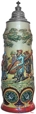 The central image on this stein differs only in the details from those found on Nos. 680 (0.5L), 681 (1.0L) and 805 (0.5L). One of those details is a signpost on the left side that reads “Konstantanopel 1100 Km” (below right). The reason for its inclusion is unclear, but it’s interesting to note that the actual distance from Breman to the ancient city named after the Roman emperor Constantine (now Istanbul) is actually a little over 2,000 Km.