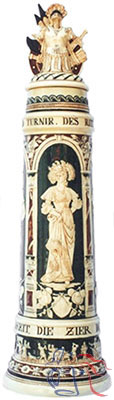 Pottery or stoneware, relief, 8.0L, figural lid (armored knight), signed �GK�.