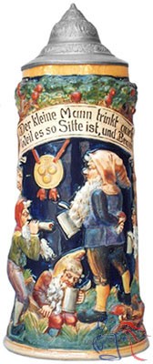 Pottery, relief, 0.5L, pewter lid, signed �KB� (Anton Killian �Karl� Beuler).