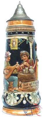 Pottery, relief, 1.5L, pewter lid, signed �KB� (Anton Killian �Karl� Beuler).