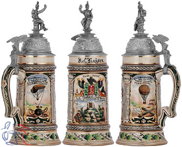 From the 1888 until the onset of World War I, German males between the ages of 17 and 20 were obligated to serve a period of active military duty, normally two or three years, after which they became reservists, subject to recall through the age of 45. Upon completion of active duty, reservists often purchased souvenirs in remembrance of their experience, personalized beer steins being the most popular of these service mementos.