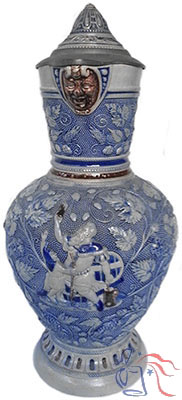 The center figure on this stein was almost certainly intended to depict Gambrinus, �the king of beer�, long a universal symbol of beer and brewing. It has been suggested that the character may be drawn from the claimed real-life inventor of hopped malt beer, Jan Primus (Johann I), a 13th-century Belgian Duke and President of the Brussels Guild of Brewers.