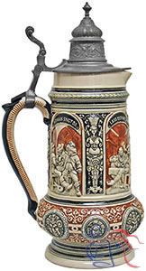 Pottery or stoneware, relief, 2.0L, inlaid (stoneware only) or pewter lid.