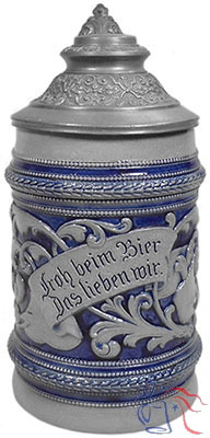 Porcelain, pottery or stoneware; relief; 0.5L; pewter lid.