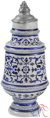 Porcelain, pottery or stoneware master stein; threaded relief; 3.0L, pewter lid; some with text.
