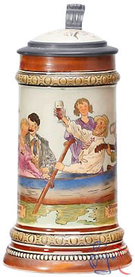 Pottery, etched, 0.5L, inlaid or pewter lid.