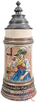Pottery or stoneware, relief, 0.5L, pewter lid.