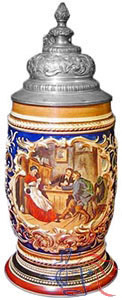 Pottery, transfer and relief, 0.5L, pewter lid, signed �GT� (Gustav Thinwibel).