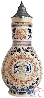Pottery, relief, 2.5L, pewter lid.