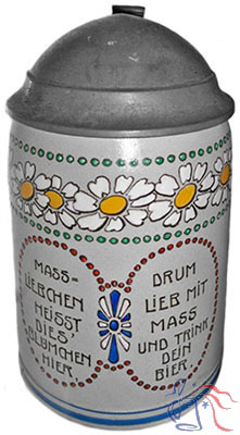 For purposes of understanding the intent of the verse, Massliebchen has been translated literally as �measure lover�. However, the pictured flowers are actually called �ox-eye daisies� in English. The word Mass can also be used to describe the amount (measure) of beer in a standard one-liter beer stein, or the stein itself as a shortened form of Masskrug (measure stein).