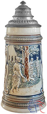 Pottery, relief, 1.0L, pewter lid.