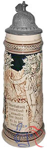 Pottery or stoneware, relief, 1.5L, pewter lid.