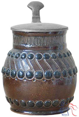 Stoneware, relief, 0.5L, pewter lid. Design attributed to Gertrud (Trude) Study.