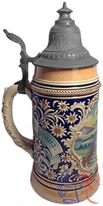 Pottery, transfer and relief, 1.0L, pewter lid.