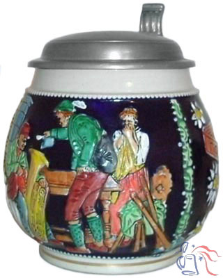 Pottery or stoneware, relief, 0.5L, pewter lid.