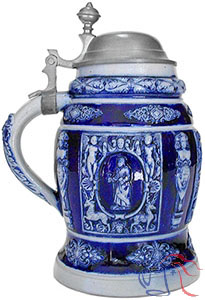 Pottery or stoneware, relief (Creussen style), 1.0L, pewter lid.