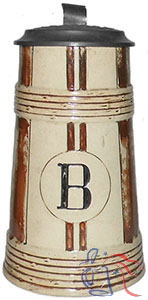 This is a ceramic imitation of a Lichtenhainer Krug, named for a small town in Saxony where wooden Daubenkr�ge (slat steins) have been produced since at least the 17th century.