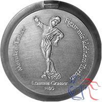 The lid relief, entitled Figur mit kleinem Turban (Figure with Small Turban), is the tenth in a series of ten depicting 15th century Moriskentänzer (Morris dancers). Created in 1480 by Erasmus Grasser, the original wood sculptures are currently housed in the collection of the City Museum of Munich.