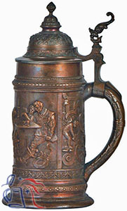 A variation of this stein can be found with copper plating (below right) applied by L.Thannemann & Cie, a Munich finishing shop and distributor.