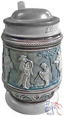 Pottery or stoneware, relief, 0.25L, pewter lid.