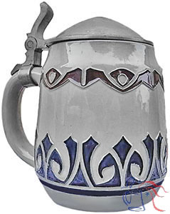 This is one of forty designs, sixteen of which were steins, created by Hellmuth for Merkelbach in 1904. These pieces are designated �H1� through �H40� in the 1905 manufacturer�s catalog, though only a stand-alone numerical designation (i.e., �4�) is found on the base, along with Hellmuth�s �LH� signature/logo.