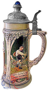 Pottery, relief, 0.5L, pewter lid (shown with faceted glass inset).