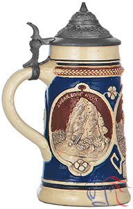 Mackinac Island, Michigan is a 3.8 square mile resort area located in Lake Huron. The central image on this stein depicts the Island�s Marquette Park and the old Fort Mackinac, built by the British in 1780 following the French and Indian War. Side images depict Arch Rock and Sugar Loaf Rock, two island landmarks.