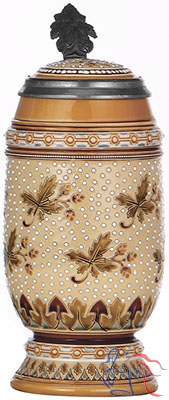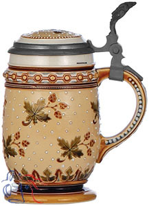The 0.5L version of this stein was produced with both a recessed base (right) and a flat base (below left). The 0.3L version is currently known to exist only in the flat base configuration.