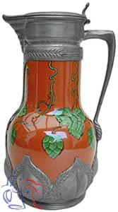 Pottery, transfer with pewter overlay, 3.0L, pewter lid, marked �Orivit�.
