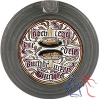 The centrally depicted double-headed eagle is taken from the German printers� coat-of-arms. Surrounding the body of the stein is a cityscape of �Mainz in 1450�, home of Johannes Gutenberg (c. 1398-1468), the inventor of movable type printing.