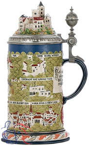 The configuration of the lid inlay can vary, depending on when the stein was produced.